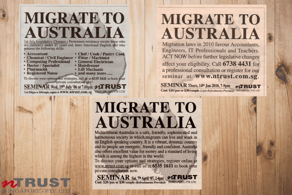 Since then, we have been telling people a lot of things. The image above are just a few of the past newspaper advertisement copies we used (from 2006 to present) to inform people not only of opportunities, but information that are beneficial in helping them decide to migrate to Australia from Singapore or elsewhere.